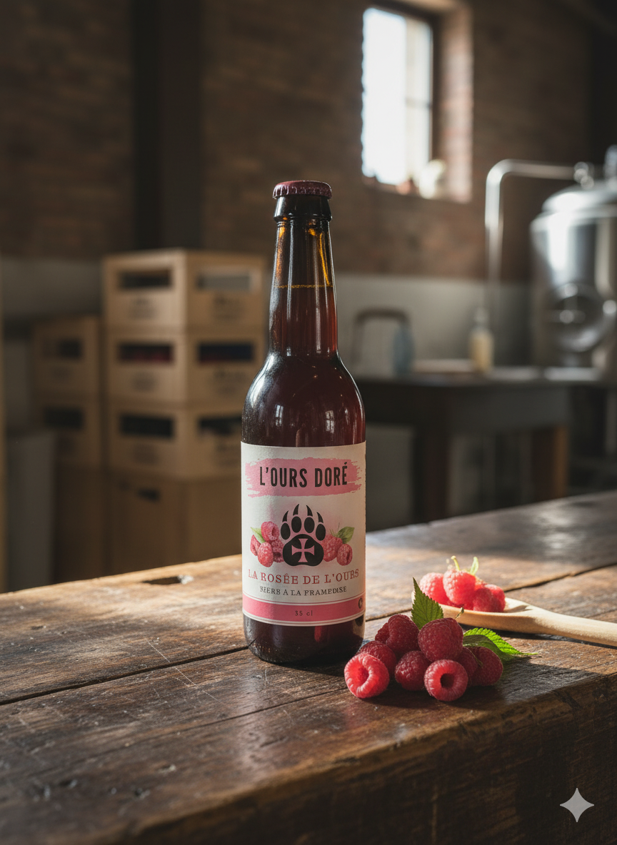 Brassée sur une base blonde légère, La Rosée de l’Ours révèle une belle intensité de fruit, soutenue par une touche subtile de baie de rose. Cette épice délicate vient souligner la framboise en apportant une note florale raffinée, sans jamais dominer.