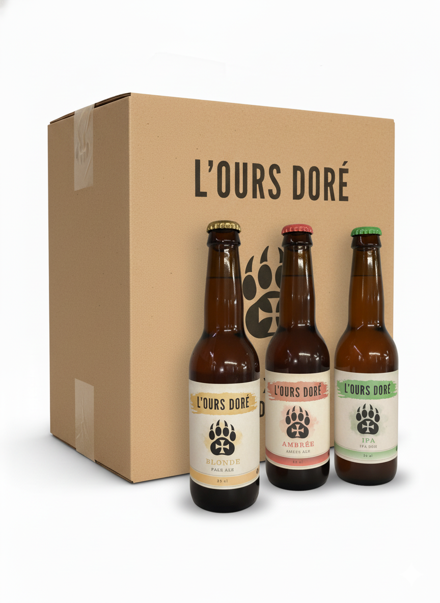 Découvrez l’essence de la microbrasserie L’Ours Doré à travers ce carton panaché réunissant nos trois bières artisanales emblématiques :